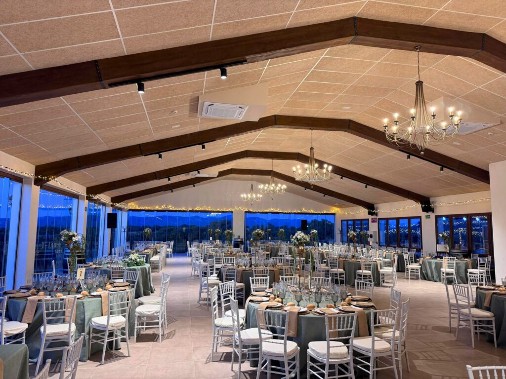 - Espacios exteriores e interiores para banquetes y fiestas, adaptables al estilo de cada boda.